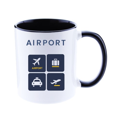 Taza de cerámica bicolor con señales de aeropuerto sublimadas
